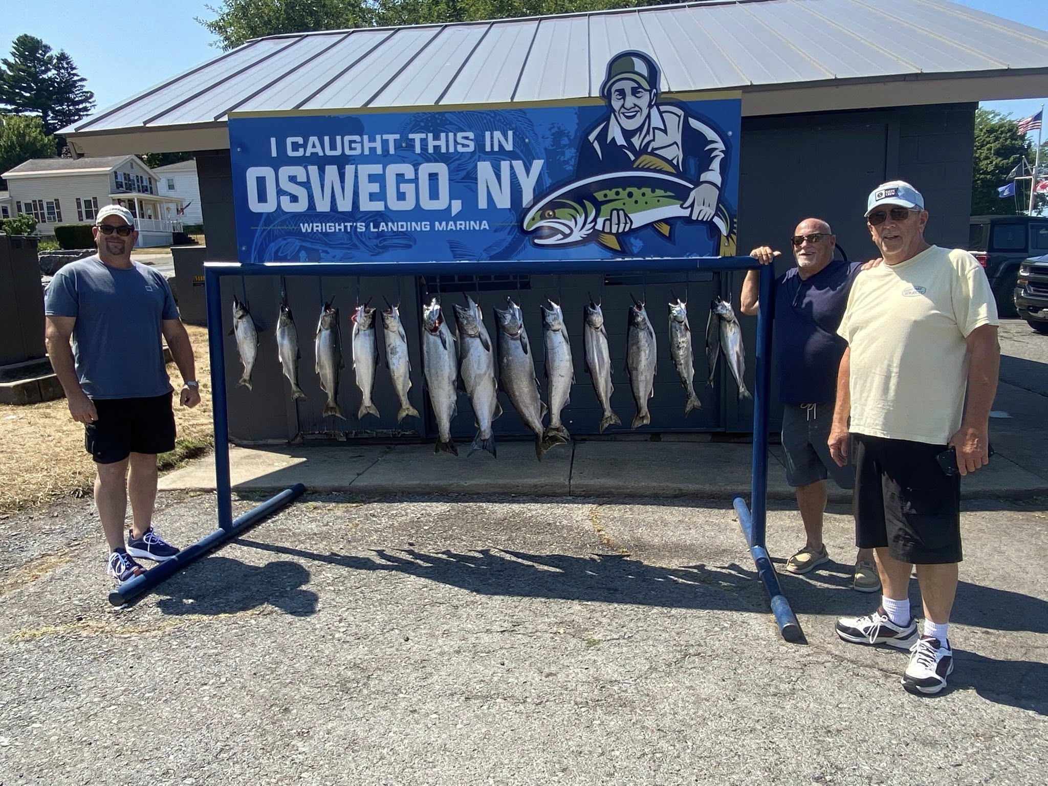 Chinook Salmon: The king of the Great Lakes, Chinook (or King) Salmon are the heavyweight champs of Lake Ontario. These brutes can tip the scales at over 30 pounds, and they fight like their lives depend on it. We target them throughout the season, but fall is prime time when they stage for their spawning run. There's nothing quite like the scream of a reel when a big Chinook decides it's not ready for the net.