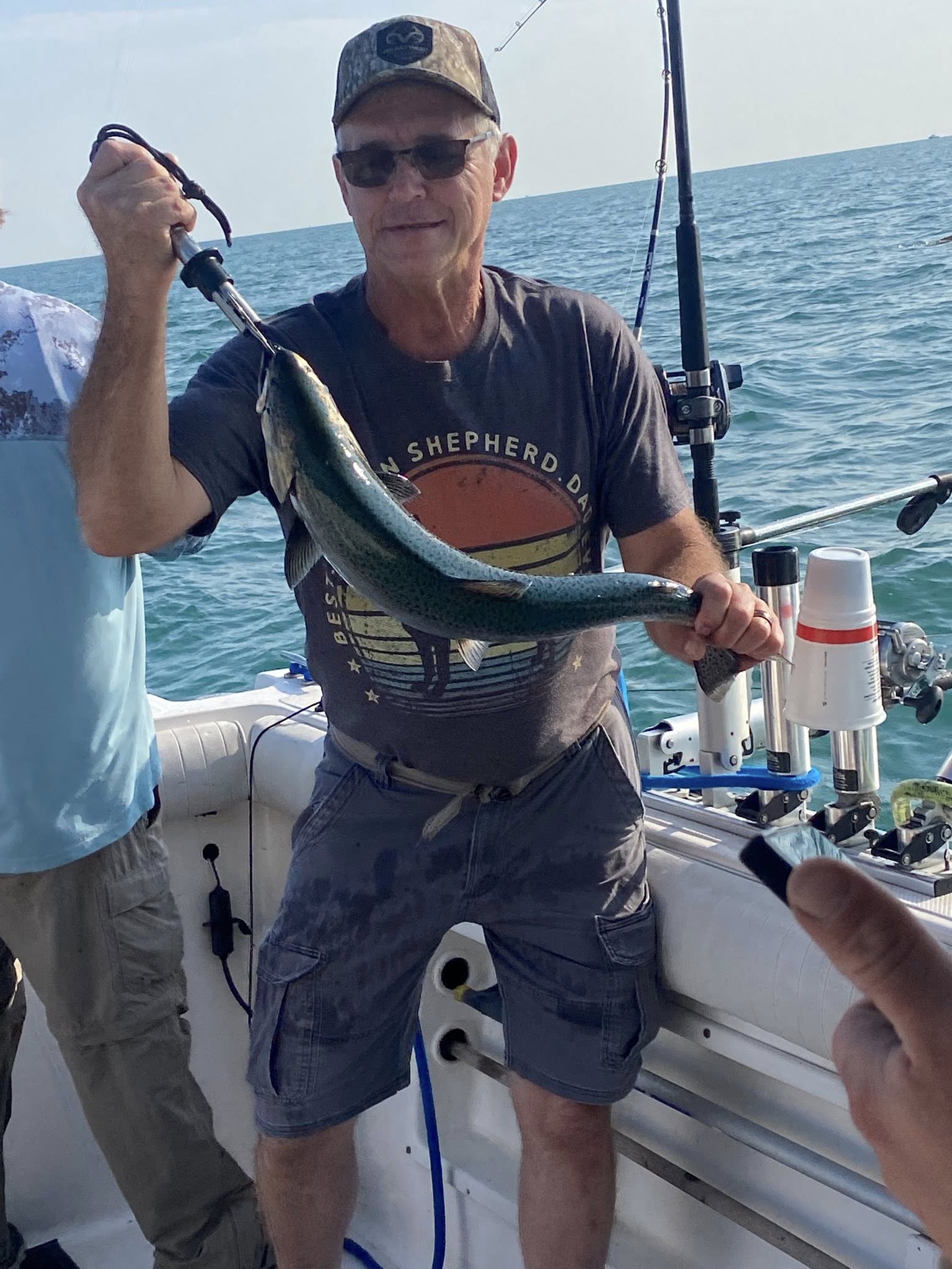 Rainbow Trout (Steelhead): Lake Ontario's steelhead are like supercharged rainbow trout. These fish are pure muscle and known for their blistering runs and aerial acrobatics. We catch them year-round, but spring and fall often see the best action as they move closer to shore. Don't be surprised if you mistake your first steelhead for a much bigger fish - they punch well above their weight class.