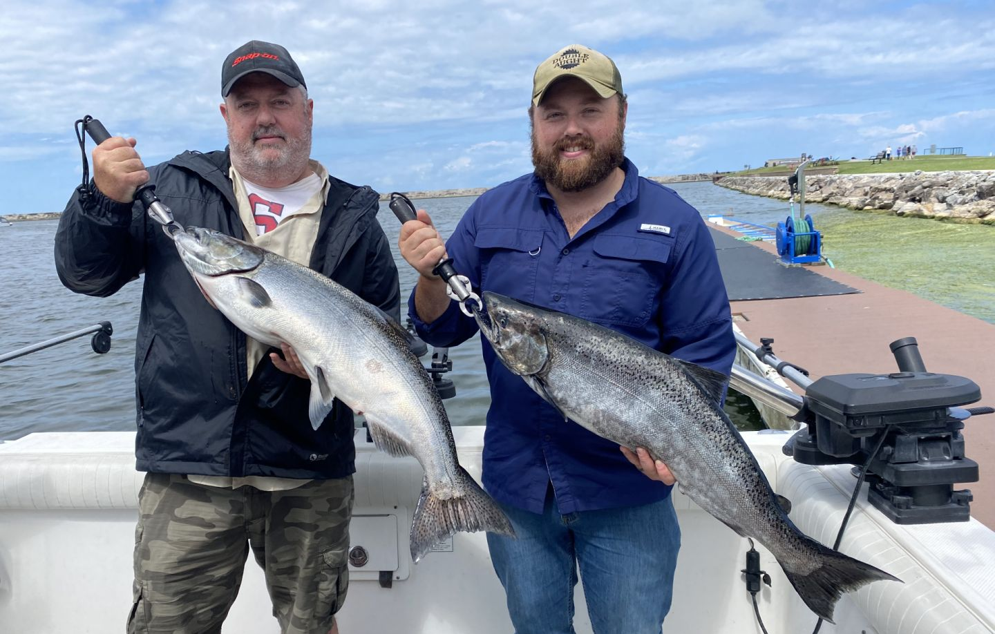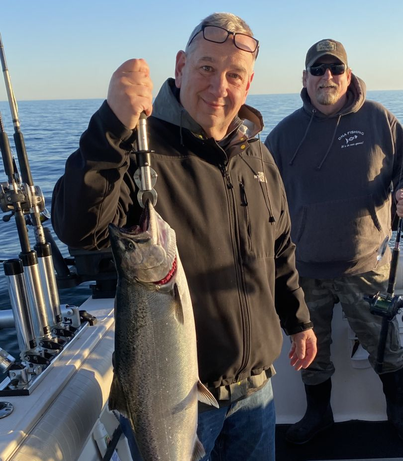 Chinook Salmon: The kings of Lake Ontario, these brutes can top 30 pounds and will test every bit of your tackle and skill. Chinooks are known for their powerful, bulldogging fights and their tendency to make blistering runs right when you think you've got them beat. Late summer through fall is the peak season, but we catch them all summer long.